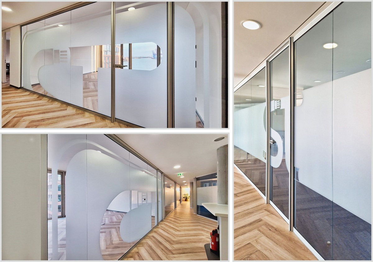 In Hamburg hat sich in den letzten Wochen einiges getan: Unser Team durfte die neuen Büroräume eines Unternehmens mit hochwertigen Sichtschutzfolien in Milchglasoptik gestalten. Das Ergebnis: mehr Privatsphäre, ein modernes Raumgefühl – und eine klare Markenidentität dank individueller Logoausschnitte in den Glasflächen.